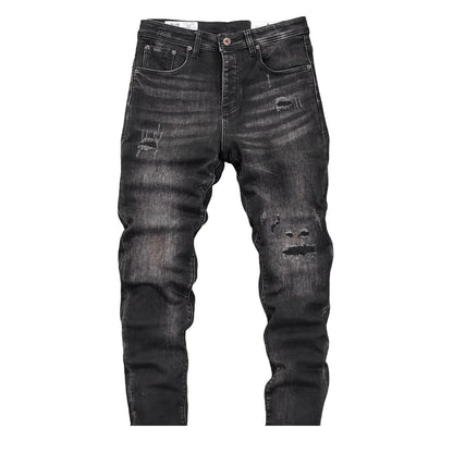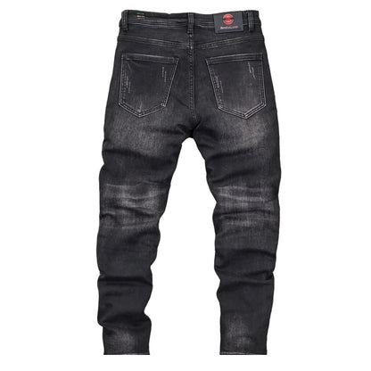 This men's black distressed denim offers a stylish and edgy look, perfect for any casual or dressy occasion. Made from quality material, this denim is durable and comfortable, while its distressed design adds a unique touch to your wardrobe. Elevate your style game with this must-have piece.