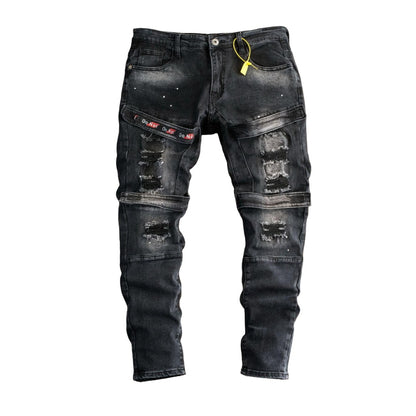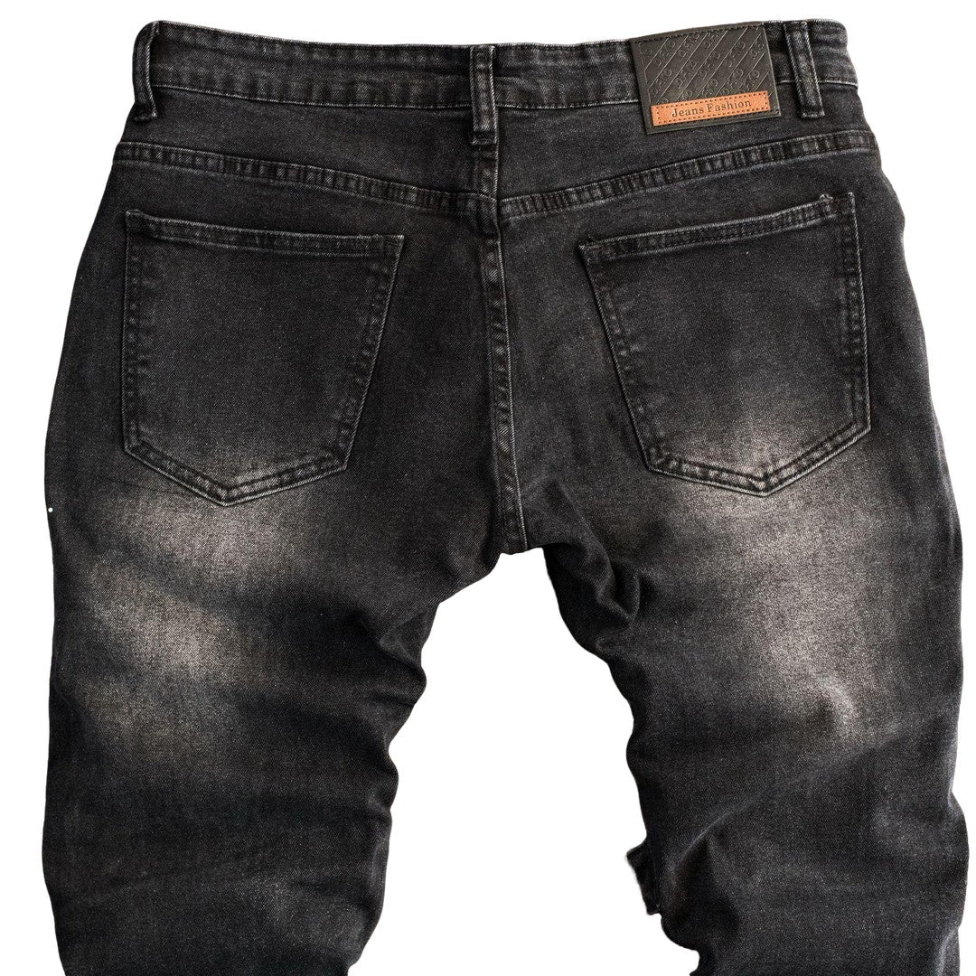 These men's black distressed strap denim jeans offer a unique and stylish addition to any wardrobe. Made with durable denim material, these black denim jeans for men feature distressed detailing and straps for a rugged yet fashionable look. Perfect for casual outings and everyday wear.
